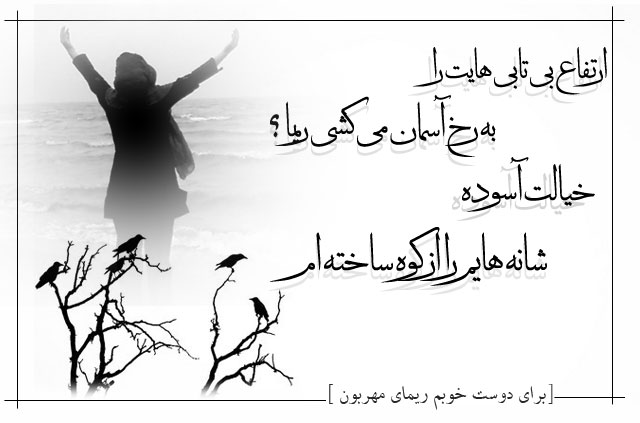 +دلم می خواد برم رو پشت بوم بخوابم ولی نمیشه ! دلم می خواد برم رو درخت کاج،برم بالای بالا نوک درخت وایستم ولی اینجا درخت کاج نداریم،دلم می خواد غروب که میشه برم خودم رو پرت کنم توی چمن زارها،دراز بکشم و آسمون رو نگاه کنم اما نمیشه،پارک های اینجا شده مکانی واسه تجمع یه مشت ارازل که نمیشه نزدیکشون شد ! دلم می خواد با دوچرخه برم بیرون و کلی بچرخم ولی دوچرخه ندارم !