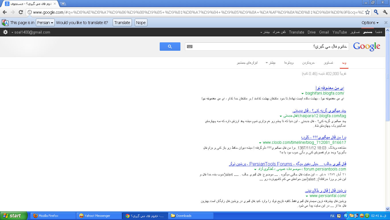 _ امروز دنبال فالگير مي گشتم،تو گوگل جستجو كردم به [ اين وبلاگ ] رسيدم،[ اين هم سندش ] حالا ايشون منكر ميشه و ميگه من فال نمي گيرم،شما بگيد من چيكار كنم با اين آدم ؟